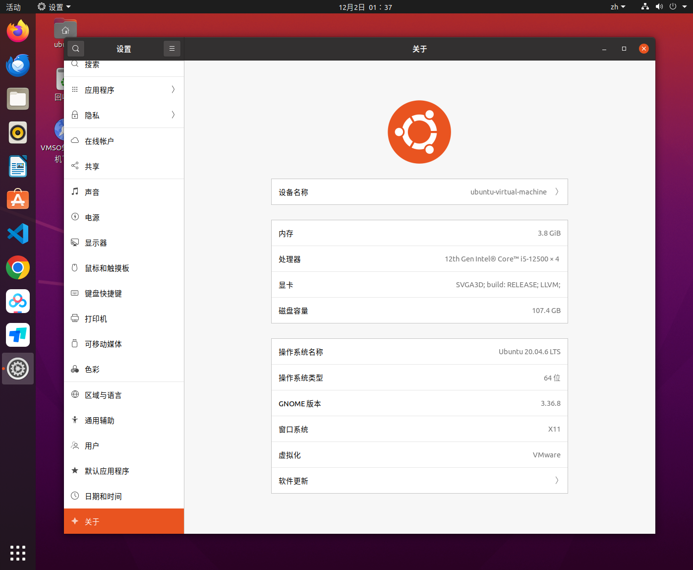 虚拟机版本:ubuntu-20.04-desktop桌面版
