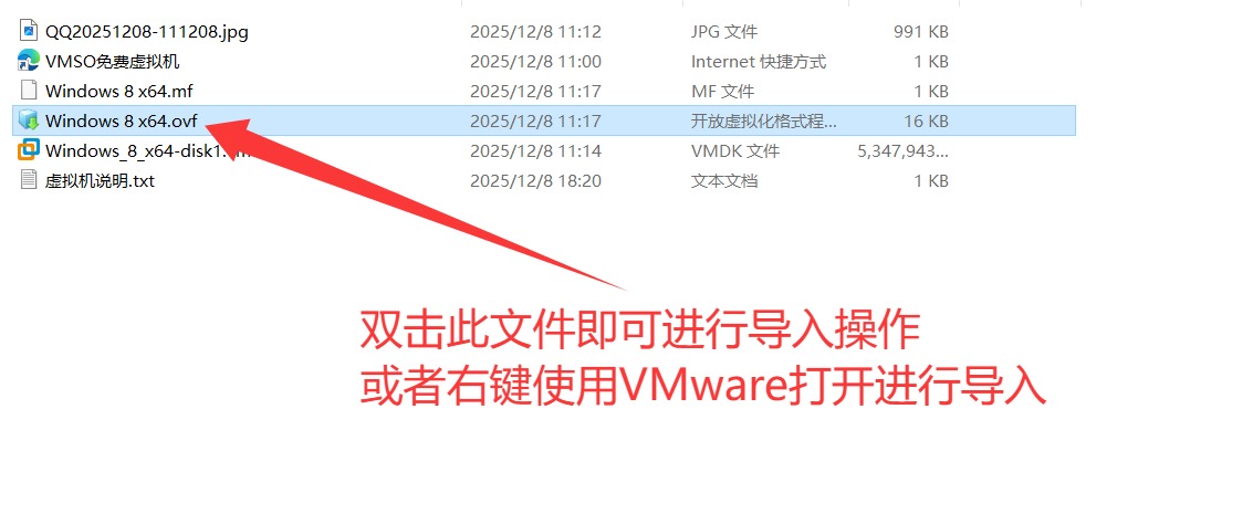 下载后解压出来选择 Windows 8 x64.ovf 文件 右键使用 VMware 打开即可导入