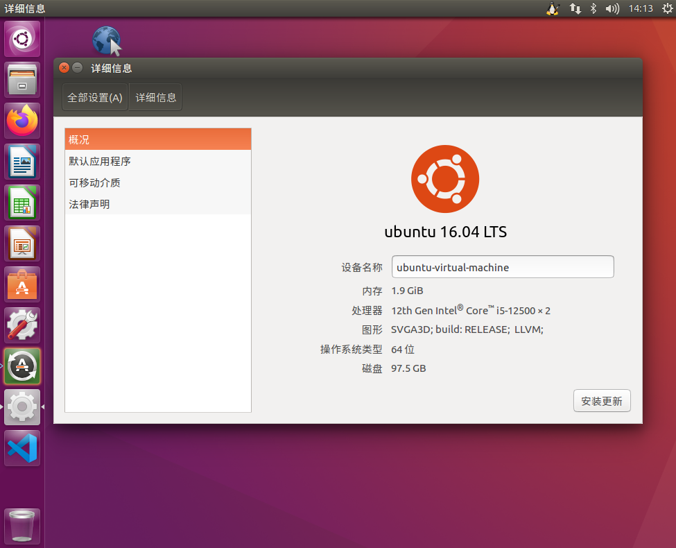 虚拟机版本:ubuntu-16.04-desktop桌面版