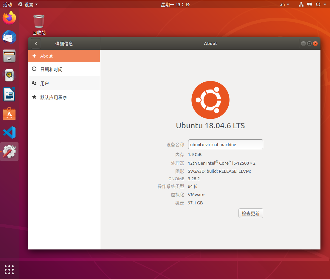 虚拟机版本:ubuntu-18.04-desktop桌面版
