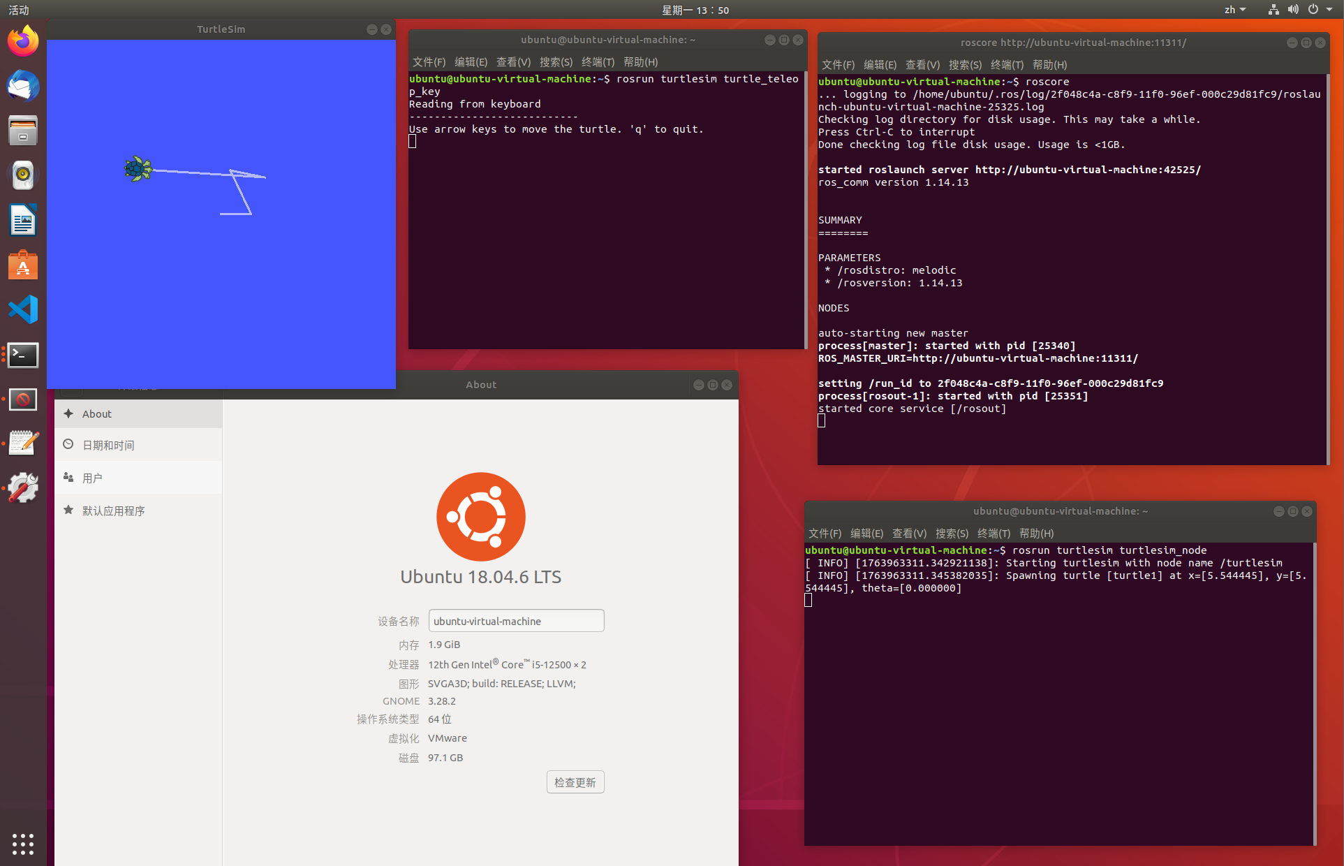 虚拟机版本:ubuntu-18.04-desktop桌面版+ros-melodic-desktop